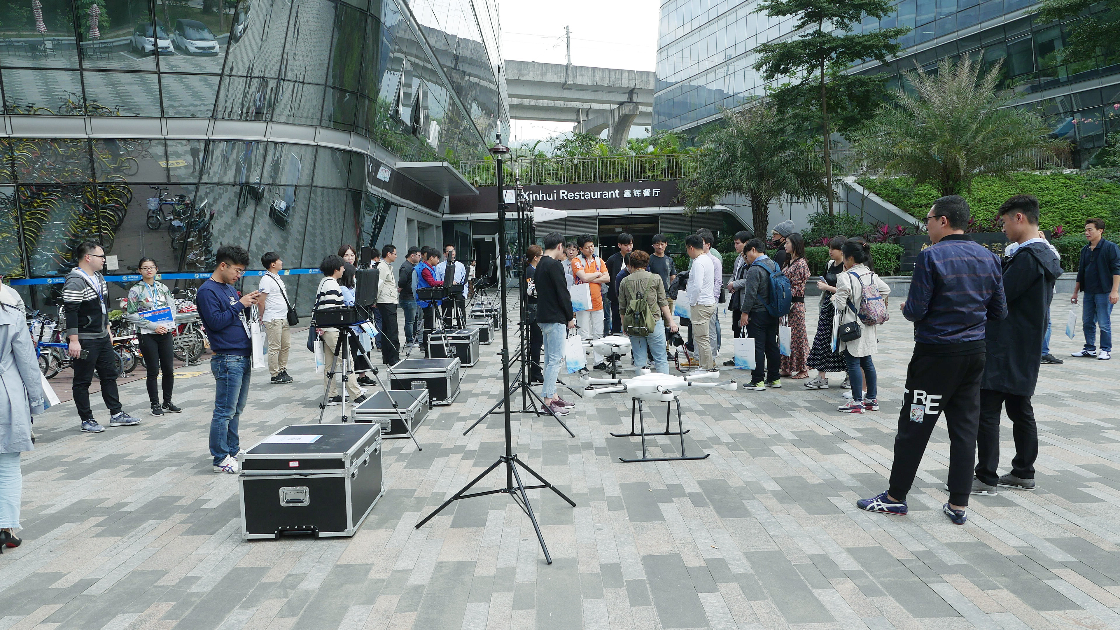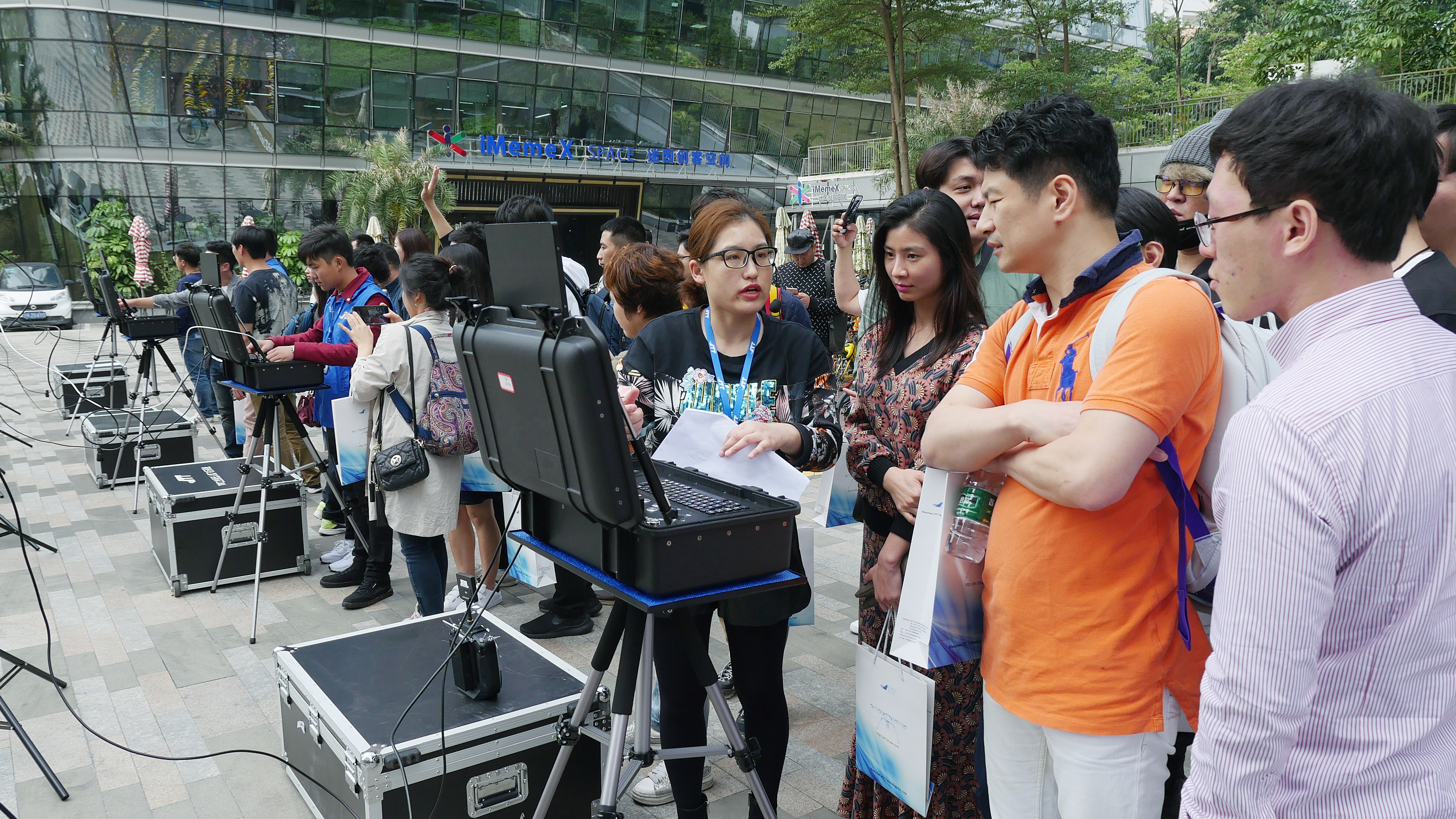 交流會分兩個部分進(jìn)行,首先在智園A5棟廣場進(jìn)行試飛演示,其中智璟科技給來訪人員展示了T60V1、T60V2等型號的4臺無人機(jī),并且分別搭載了30倍高清相機(jī)、喇叭等掛載?,F(xiàn)場的無人機(jī)飛行演示深深吸引了前來造訪的考察團(tuán),他們紛紛拿出自己的手機(jī)和相機(jī)進(jìn)行拍攝,并不時的發(fā)出贊嘆聲。同時,智璟科技代表通過專業(yè)的解說為大家答疑解惑。