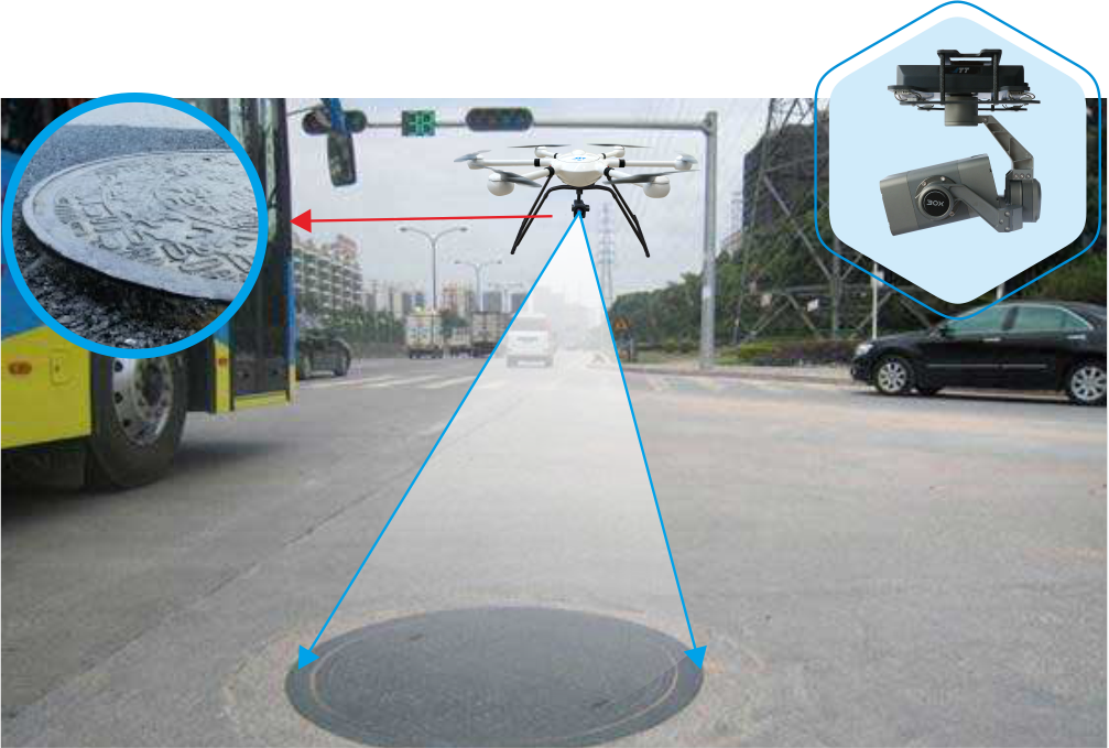 無(wú)人機(jī)搭載30倍高清變焦相機(jī)在巡邏的過(guò)程中,可以在高空遠(yuǎn)距離識(shí)別道路上的井蓋等公共設(shè)施是否遭到非法人員破壞或盜取,還可以查看是否有人非法往雨水管道排放污水,用消防栓取水等。一經(jīng)發(fā)現(xiàn),立刻派遣相關(guān)人員到達(dá)指定地點(diǎn)進(jìn)行處理,大大節(jié)省了人力,提高了工作效率。