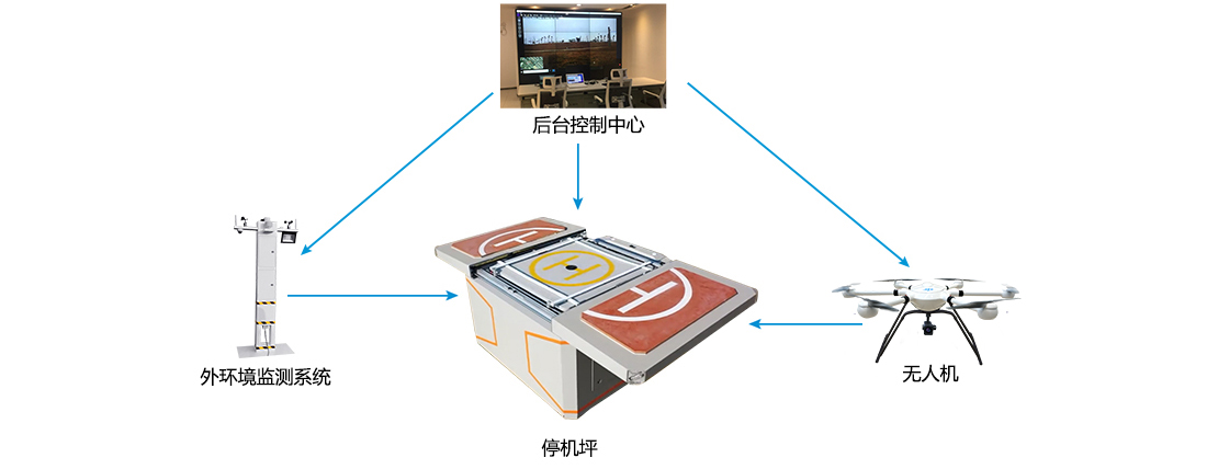 系統(tǒng)包括后臺控制中心、外環(huán)境監(jiān)測系統(tǒng)、停機坪、無人機