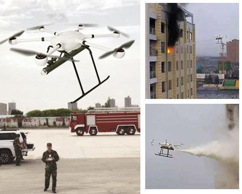 國內(nèi)外高層建筑火災(zāi)多有發(fā)生,即使有充足精良的消防器材裝備,比如消防車云梯,也因?yàn)楦叨认拗疲鴽]有及時(shí)控制火災(zāi)進(jìn)而難以撲滅,最終造成生命和財(cái)產(chǎn)的損失。通過T60無人機(jī)搭載泡沫滅火系統(tǒng)和高清攝像機(jī),利用其飛控系統(tǒng)的優(yōu)勢,在1分鐘時(shí)間內(nèi),可以攜帶泡沫滅火掛載飛行至60-100米的高樓上,利用ABC干粉滅火彈滅火,達(dá)到在消防隊(duì)員抵達(dá)前的快速滅火的效果,同時(shí),通過攝像機(jī)的圖傳系統(tǒng)回傳的畫面,可以迅速觀察火災(zāi)情況,予以決策判斷。