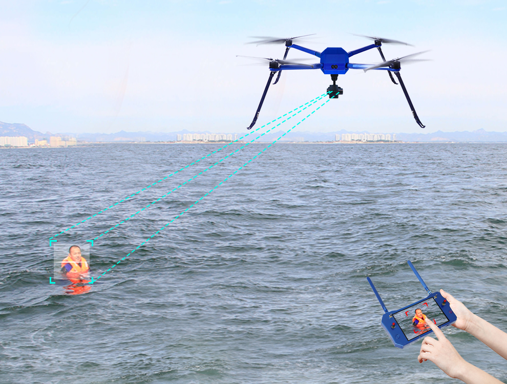 為了更全面的保護(hù)環(huán)境,靠近海島的區(qū)域,往往都不會(huì)有太全面的監(jiān)視,有許多游客包括小孩,有的甚至脫掉救生衣,直接去體驗(yàn)大自然的美好。然而,意外經(jīng)常會(huì)發(fā)生。在深圳某地,有個(gè)小孩為了證明自己會(huì)游泳,腳被海底下大卷的海草給絆住了,一時(shí)間因?yàn)樾幕?,身體在大海上失衡了,隨即危險(xiǎn)襲來。智璟科技C85無人機(jī)在海島上巡航時(shí)候,就發(fā)現(xiàn)了水面異樣,隨后快速飛去異樣現(xiàn)場觀看,通過人臉識(shí)別鎖定人臉后,啟用自動(dòng)跟隨,精準(zhǔn)定位到孩子的具體位置,當(dāng)?shù)孛嬲究吹骄唧w位置后,救援人員隨即派出水上救援機(jī)器人前去營救,小孩抓到機(jī)器人后便恢復(fù)了平衡(機(jī)器人擁有75kg的浮力,相當(dāng)于四個(gè)傳統(tǒng)泳圈),之后救援人員開啟一鍵自動(dòng)返航,把小孩安全帶回岸上。