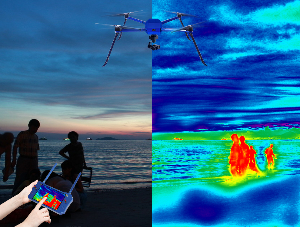 在夜晚的巡邏當(dāng)中,搭載的紅外熱成像儀,通過顏色、形狀、動(dòng)作辨別人體的位置和狀態(tài),協(xié)助分析是否處于危險(xiǎn)狀態(tài)當(dāng)中。