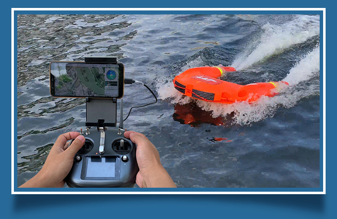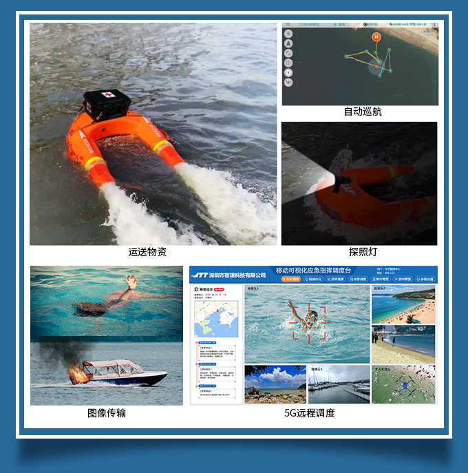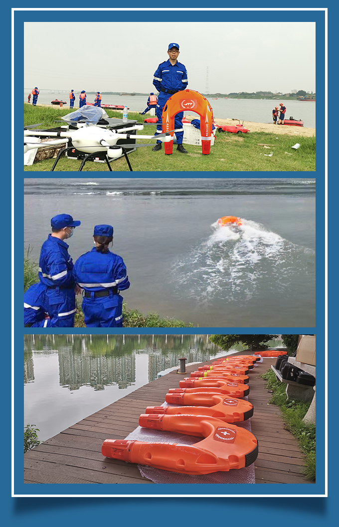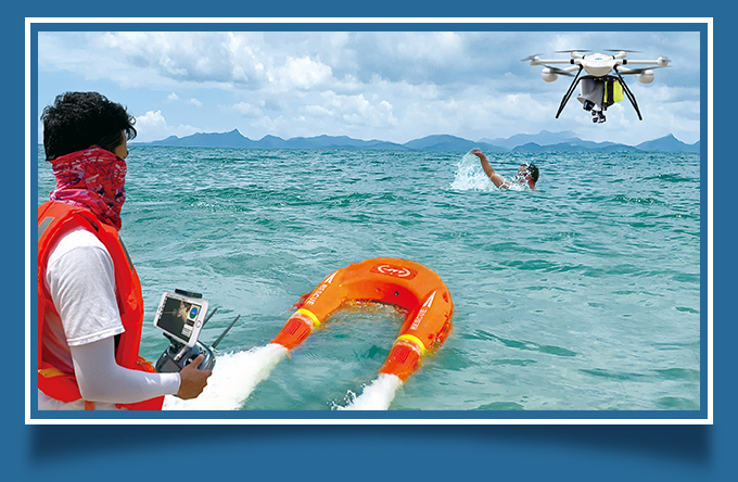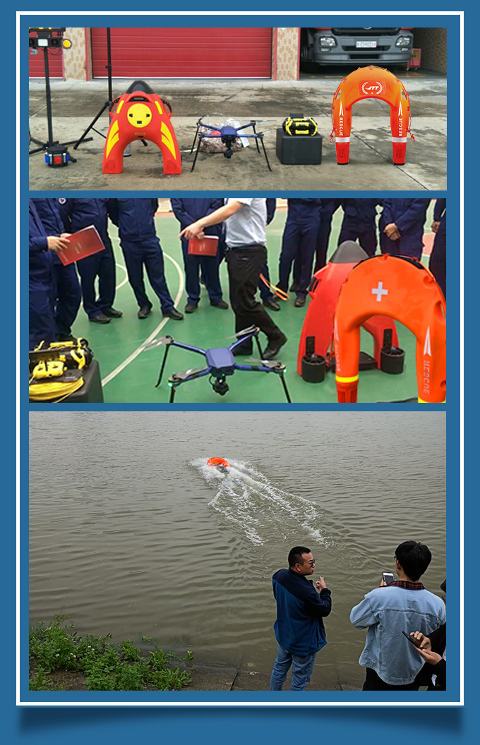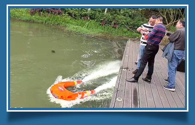 空海一體模式:救援機(jī)器人能跟無人機(jī)配合實(shí)現(xiàn)空海一體模式,無人機(jī)能清晰傳回前方視頻,救援機(jī)器人能夠按照無人機(jī)飛行軌跡跟隨航行,實(shí)現(xiàn)遠(yuǎn)距離救援