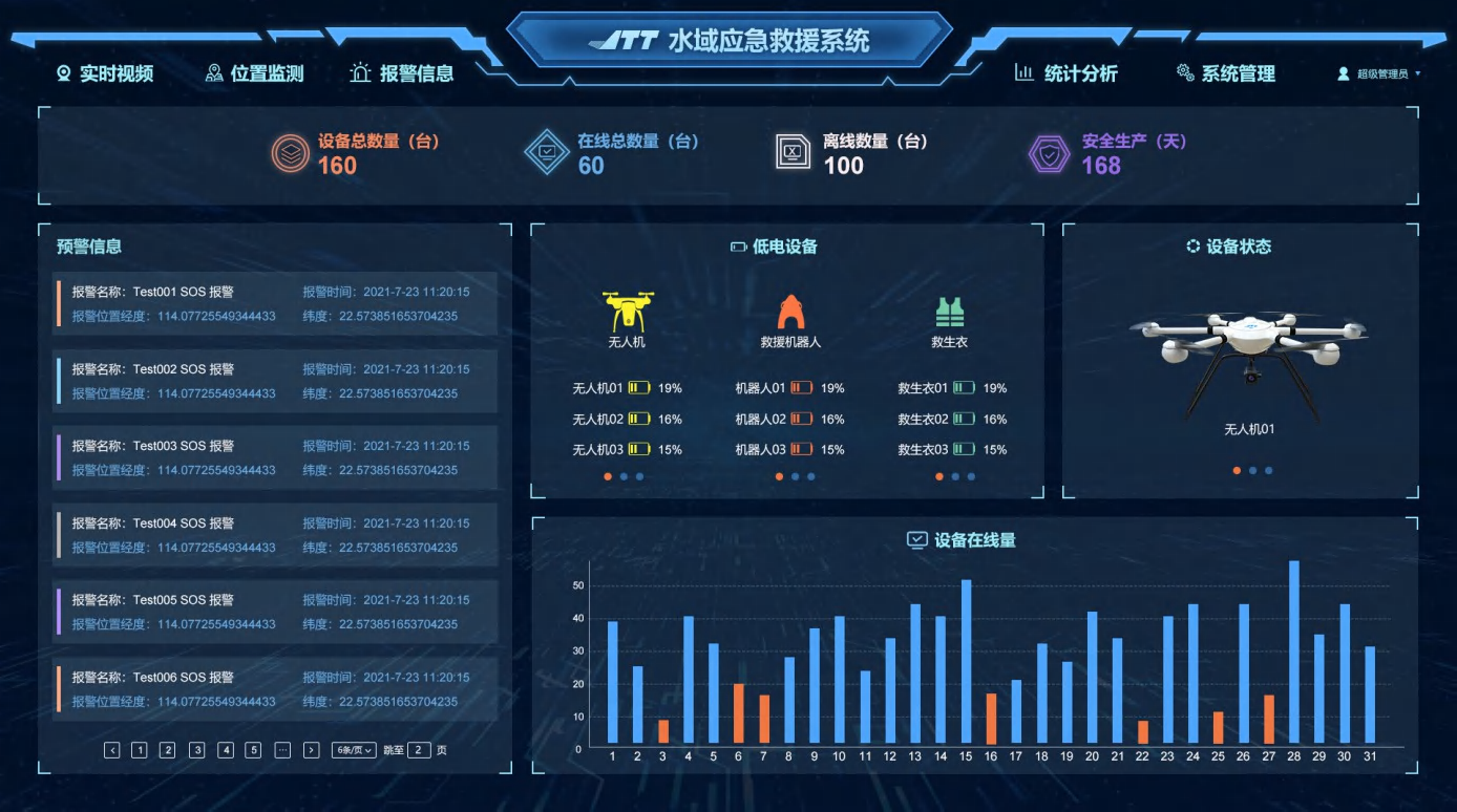 水域應(yīng)急救援系統(tǒng)采用C/S、B/S混合式、多層系統(tǒng)架構(gòu),將水域應(yīng)急救援系統(tǒng)(空中巡查系統(tǒng),水域救援系統(tǒng),作業(yè)平臺AI安全預(yù)警系統(tǒng),救援人員防溺水監(jiān)測系統(tǒng)等)、報警聯(lián)動等全部融合形成統(tǒng)一的平臺系統(tǒng),滿足了水域的應(yīng)急救援需求,大大降低了系統(tǒng)使用難度、管理效率顯著提升。水域應(yīng)急救援系統(tǒng)前端救援設(shè)備包括水域AI攝像機、救援無人機、水上救援機器人、水上救援艇、智能定位報警救生衣、停機坪、太陽能充電板等,組成空中、水面立體化救援網(wǎng)絡(luò),應(yīng)對不同的水域救援場景需求??蓮V泛應(yīng)用于抗洪救災(zāi)、海邊安全保障、水域管理、消防、交通指揮、邊防巡邏、應(yīng)急管理、部隊、大型保障等。