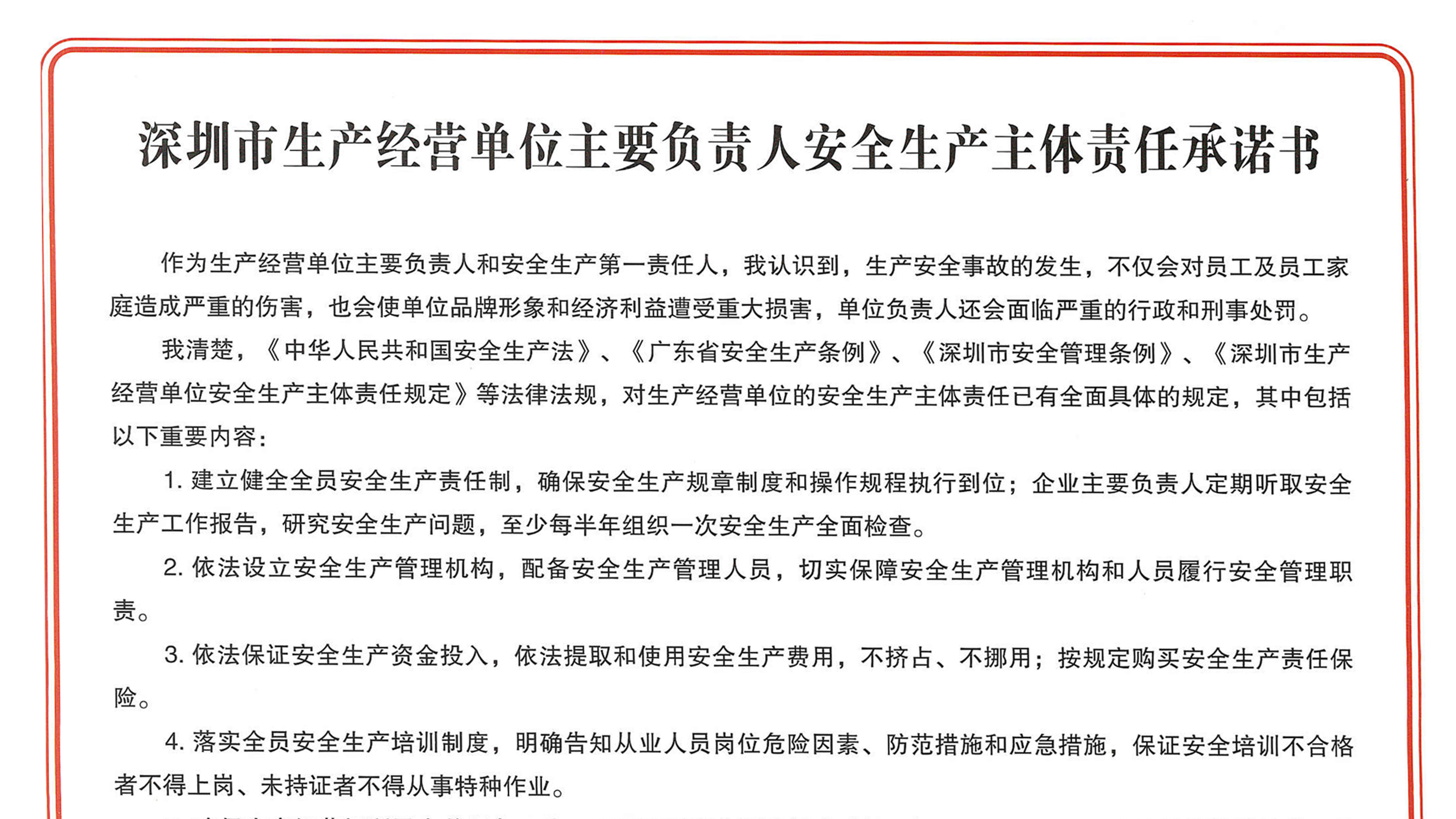 智璟科技簽署《深圳市生產(chǎn)經(jīng)營單位主要負責人安全生產(chǎn)主體責任承諾書》