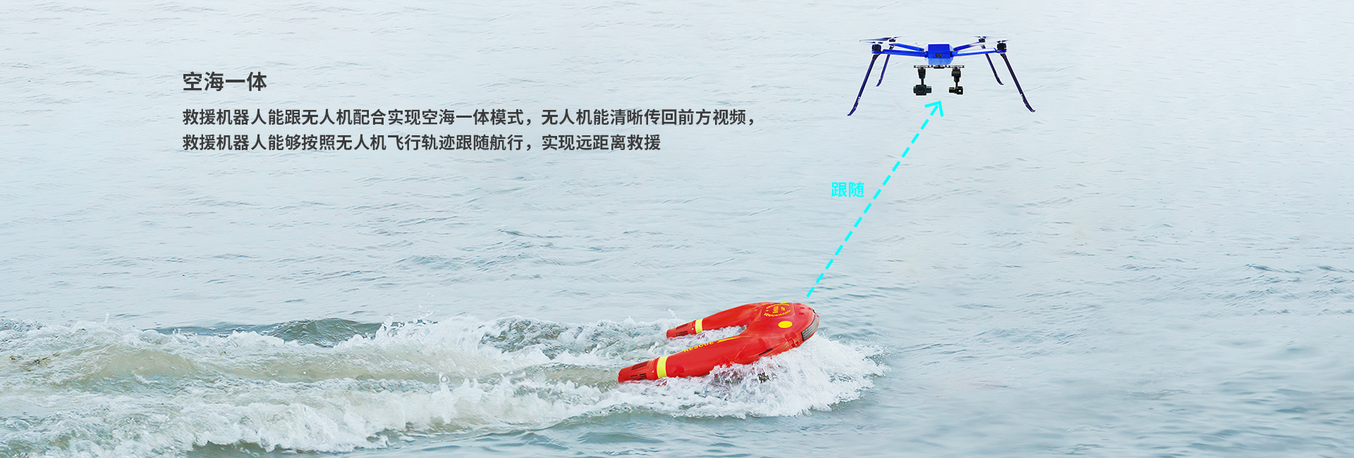 · 與無人機形成空海一體模式,自動執(zhí)行跟隨模式,無人機能清晰傳回前方視頻,救援機器人能夠按照無人機飛行軌跡跟隨航行,實現(xiàn)遠(yuǎn)距離救援;
