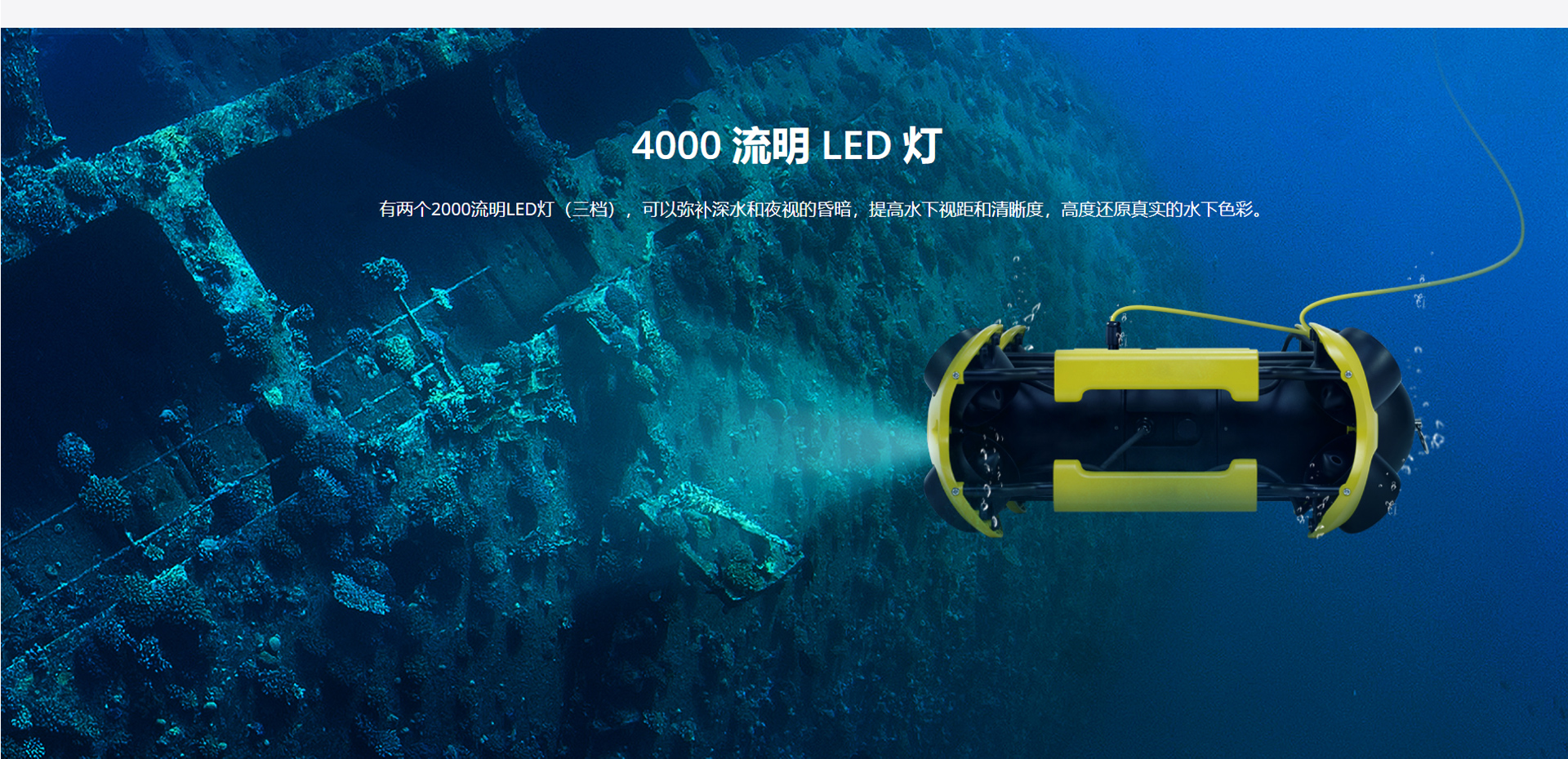 4000流明 LED燈:有兩個(gè)2000流明LED燈(三檔),可以彌補(bǔ)深水和夜視的昏暗,提高水下視距和清晰度,高度還原真實(shí)的水下色彩。