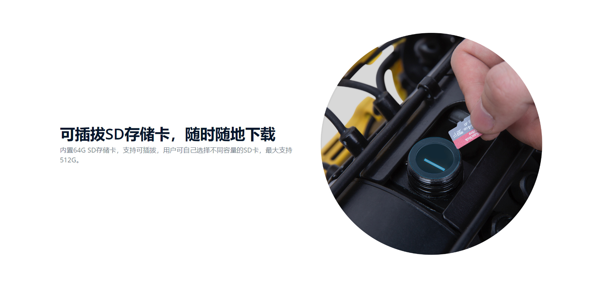 可插拔SD存儲卡,隨時(shí)隨地下載:內(nèi)置64G SD存儲卡,支持可插拔,用戶可自己選擇不同容量的SD卡,最大支持512G。