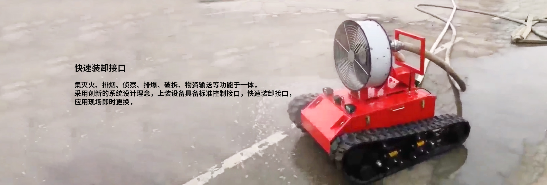 集滅火、排煙、偵察、排爆、破拆、物資輸送等功能于一體,采用創(chuàng)新的系統(tǒng)設計理念,上裝設備具備標準控制接口,快速裝卸接口,應用現(xiàn)場即時更換,一機多用,更低的使用成本,更高的使用效率。
