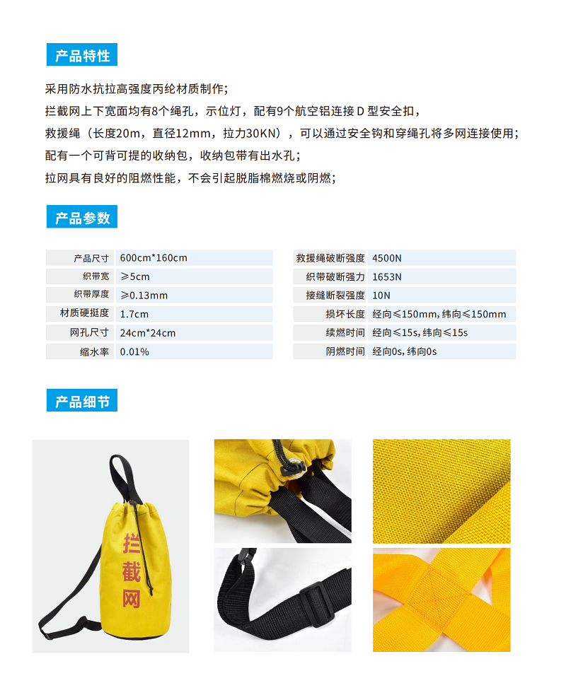 組件包含水域救援?dāng)r截網(wǎng),燈光信號裝置,環(huán)保鉛塊,專用快卸式鉛塊袋,鉛塊袋連網(wǎng) D 型扣