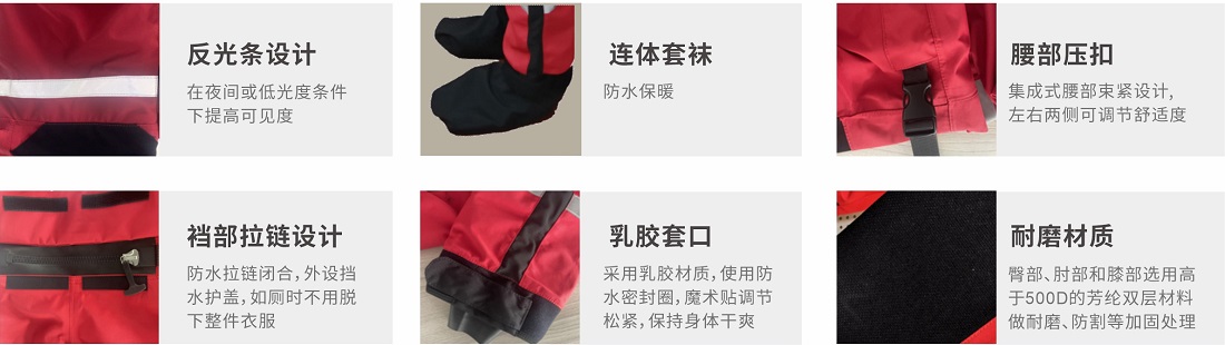 采用320D加粗3層防水透氣復(fù)合尼龍布,層壓復(fù)合面料技術(shù),面料具有超輕、耐磨、抗切割、防水、透氣等功能,可安全可靠的應(yīng)用于寒冷水域救援工作。